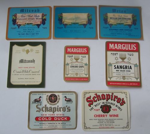 Lot of 8 - 1940's - 1950's - New York State - WINE LABELS - Kosher - Judacia