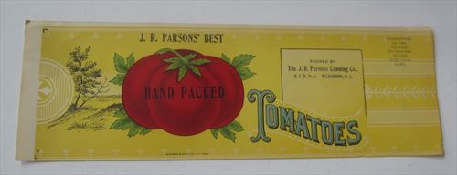 1910's - J.R. PARSONS - Tomato CAN LABEL - Wilkesboro N.C.