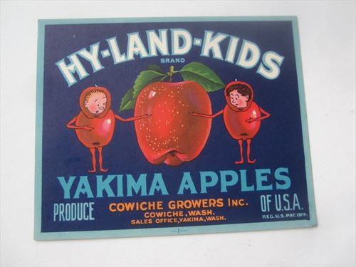 Old Vintage 1940's - HY LAND KIDS - APPLE Crate LABEL - Cowiche WASH. - 1/2 BOX