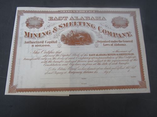 1870's - EAST ALABAMA MINING & SMELTING COMPANY - Stock Certificate - ALA.