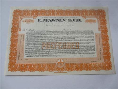 1920's I. MAGNIN & Co. Stock Certificate - San Francisco CA. - Department Store