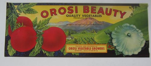 1930'S - OROSI BEAUTY - Vegetable Crate LABEL - Orosi CA.