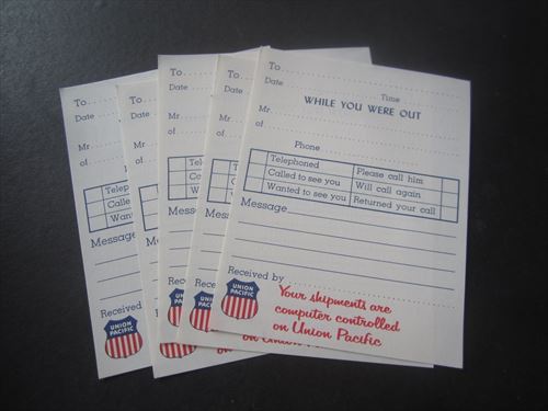 Lot of 5 - UNION PACIFIC Railroad - While You Were Out MESSAGE NOTES